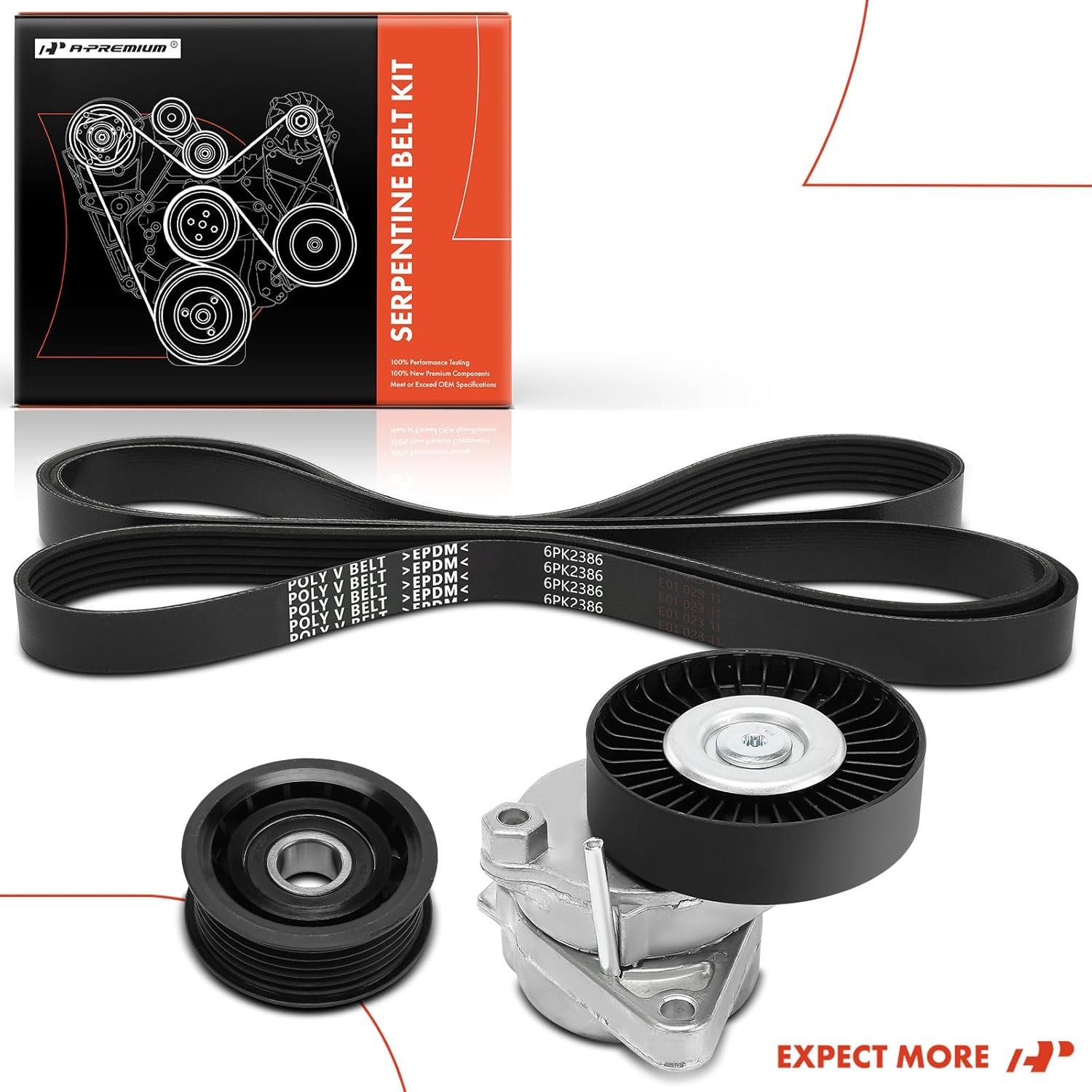 • [Functions]: A-Premium engine serpentine belt drive kit usually locates at the front of the engine and wraps around a set of sprockets. It ensures the connection between the camshaft and crankshaft, making the pistons and valves work together in the correct sequence. It will help the engine run normally, improve fuel efficiency, and thus effectively optimise the engine's performance.