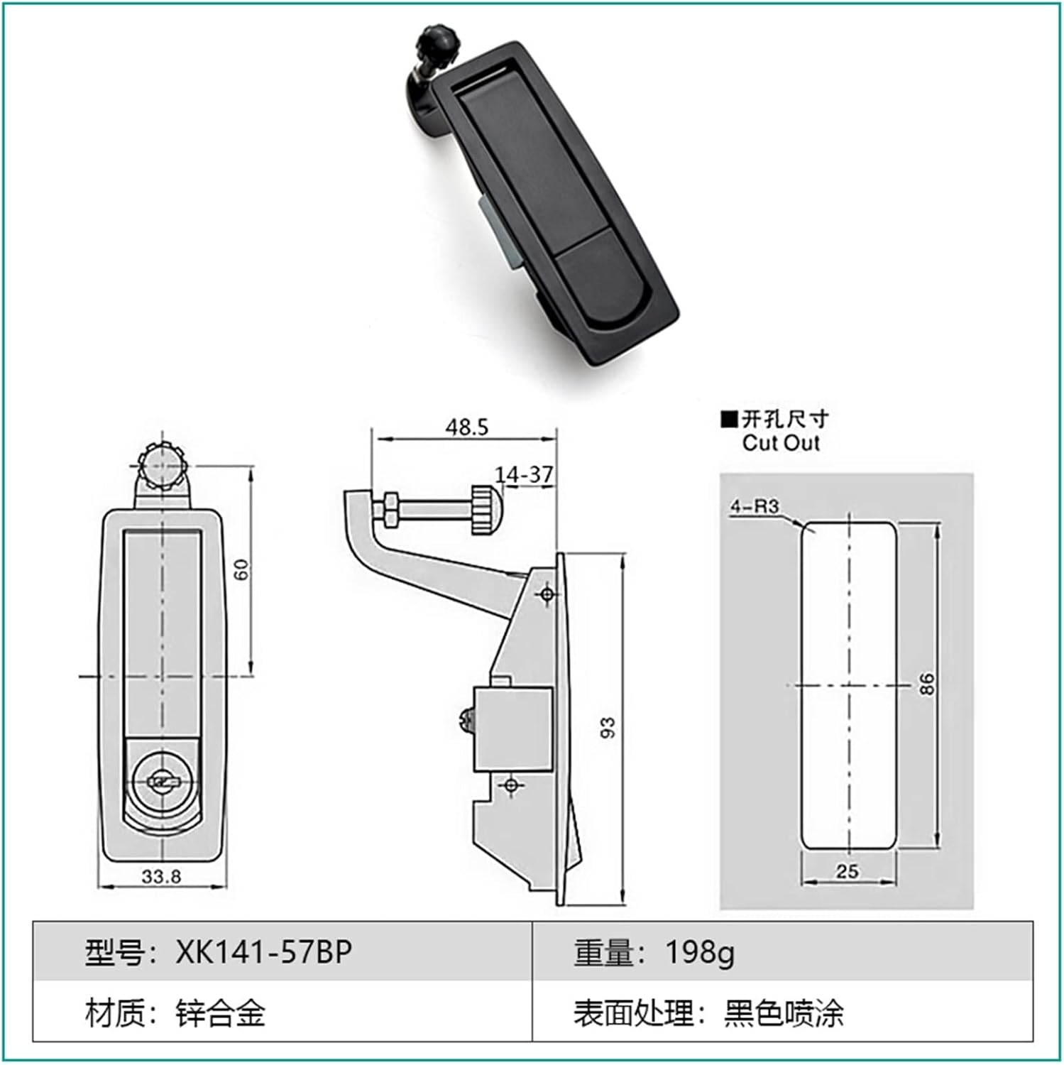 Gate LocksDescription:Material: Zinc AlloyFinish: Bright chrome plating Black powder coatedPanel thickness:1~5mmSize:Length * Width * Height:93*33.8*48.5mm,error is about 1cmPackage Included: 1PcsKindly Tips:1. Please allow 1-2cm differs due to manual measurement. Please compare the detailed size with yours before you buy.2. The color of the actual items may slightly vary from the above images due to different computer screen, thanks for your understanding.