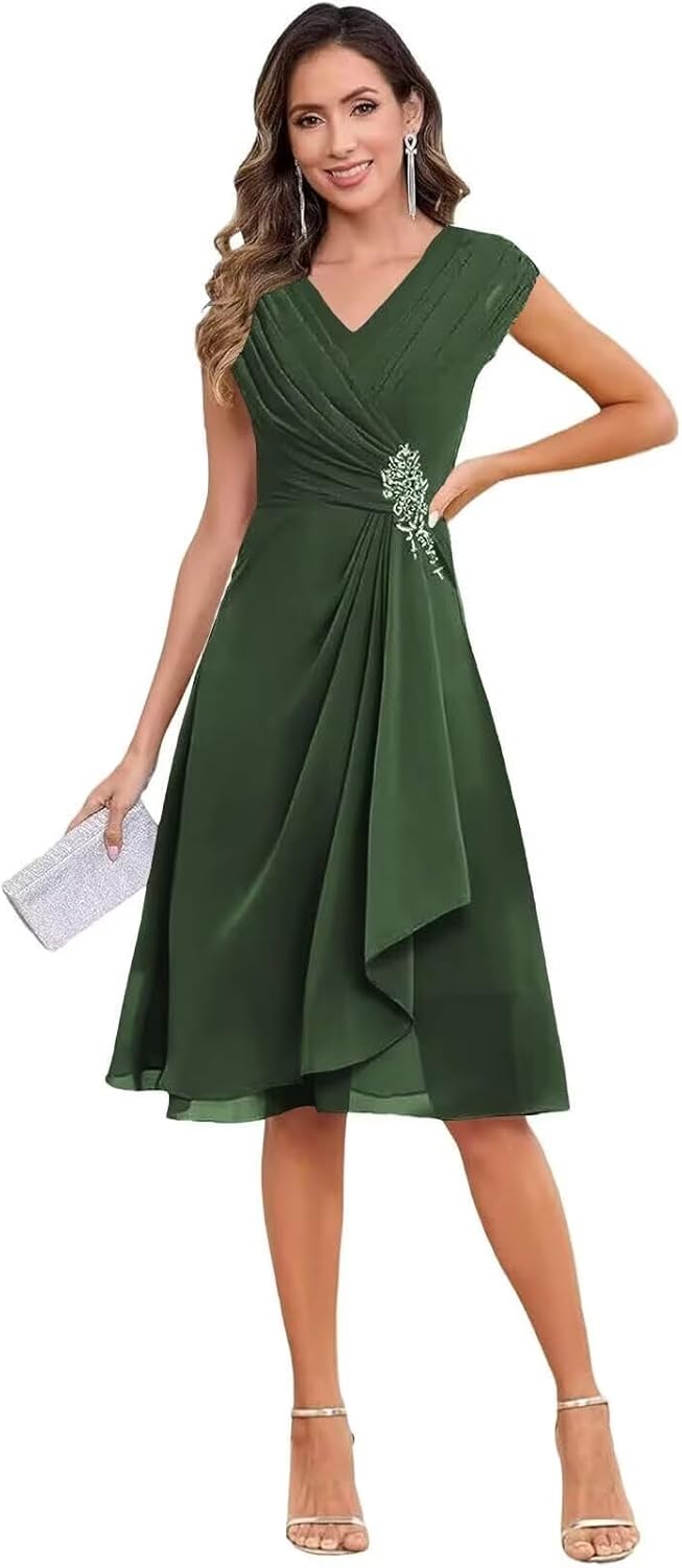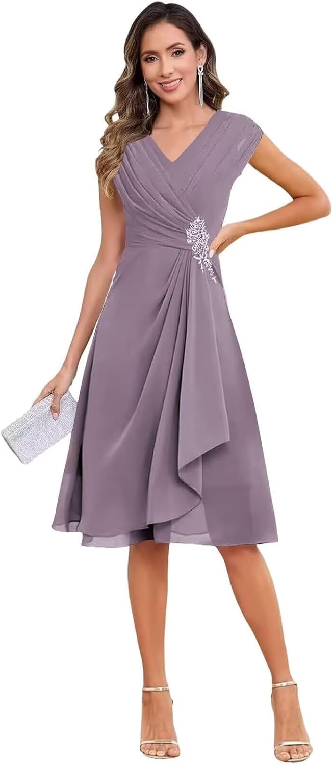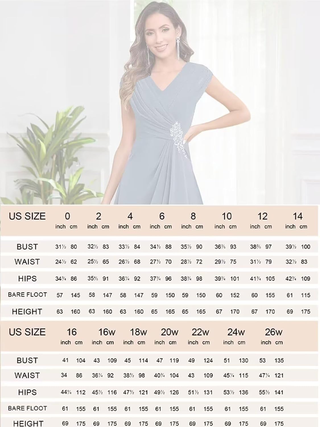 Short Mother of The Bride Dresses for Wedding Chiffon Lace Formal Evening Gowns for Women Wedding Guest Dress Knee Length Cocktail Party Gown Welcome to our store We're a professional manufacturer and seller of tea length mother bride dress,mother groom dress,prom Dress,ball gown,christmas party dress,evening dresses, formal Gown,evening gown, wedding guest dress,cocktail dress, formal dress,bridesmaid dresses Product Details: Fabric:Chiffon,Lace Neckline:V Neck Sleeve Style:Cap Sleeve Silhouette:A-Line Length:Knee Length,Short Free Customized Service is available. To make the dress fits you perfect,please complete the format below and E-mail us: 1. Bust:____ inch or____cm 2. Waist:____ inch or____cm 3. Hips:____ inch or____cm 4. The height of your high heel shoes:____ inch or____cm 5. Hollow to floor(shoulder to floor without shoes):____ inch or____cm 6. The date you need the dress:____ Notice:1. Please kindly understand that the real color of the item may be slightly different from the pictures shown on the website due to camera quality and monitor settings. 2. Please allow 1-3cm error due to manual measurement,thanks