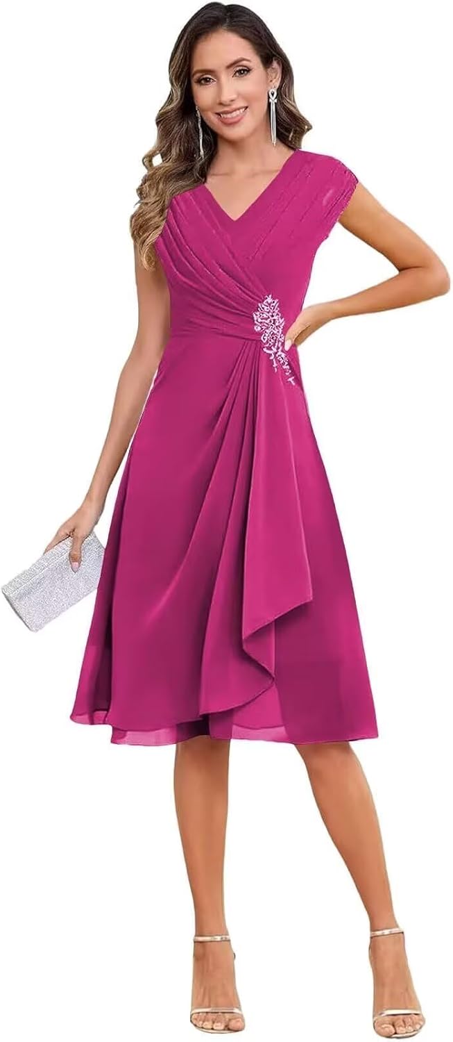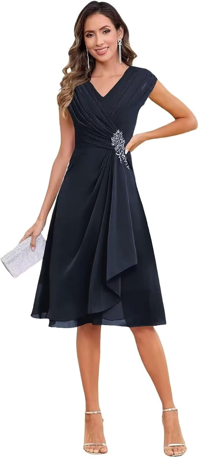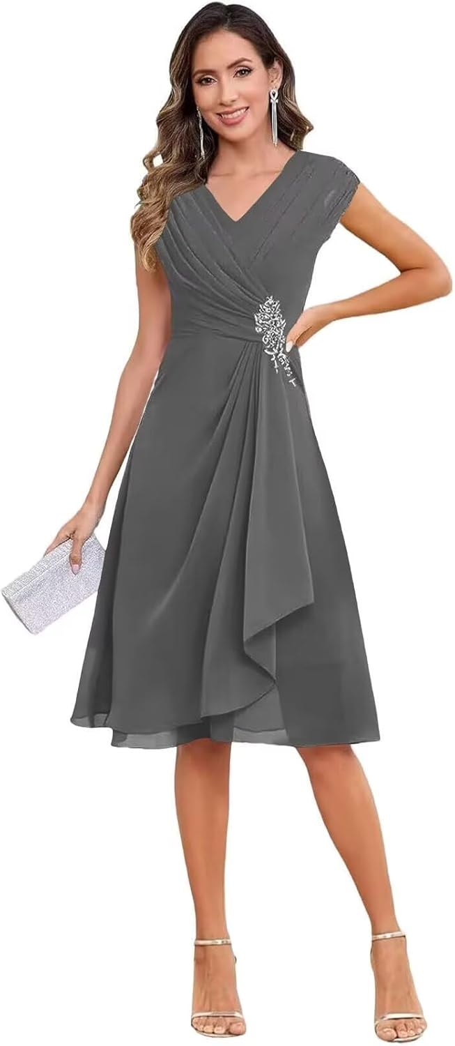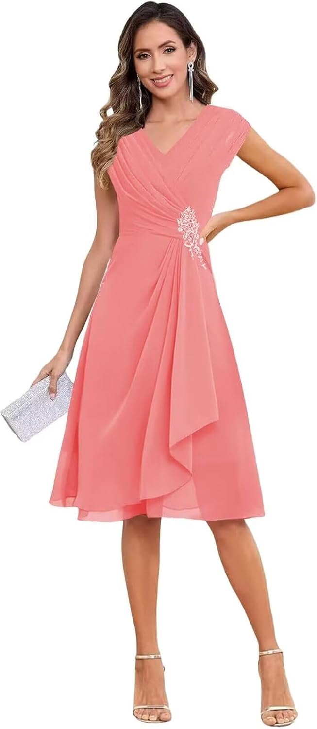 Short Mother of The Bride Dresses for Wedding Chiffon Lace Formal Evening Gowns for Women Wedding Guest Dress Knee Length Cocktail Party Gown Welcome to our store We're a professional manufacturer and seller of tea length mother bride dress,mother groom dress,prom Dress,ball gown,christmas party dress,evening dresses, formal Gown,evening gown, wedding guest dress,cocktail dress, formal dress,bridesmaid dresses Product Details: Fabric:Chiffon,Lace Neckline:V Neck Sleeve Style:Cap Sleeve Silhouette:A-Line Length:Knee Length,Short Free Customized Service is available. To make the dress fits you perfect,please complete the format below and E-mail us: 1. Bust:____ inch or____cm 2. Waist:____ inch or____cm 3. Hips:____ inch or____cm 4. The height of your high heel shoes:____ inch or____cm 5. Hollow to floor(shoulder to floor without shoes):____ inch or____cm 6. The date you need the dress:____ Notice:1. Please kindly understand that the real color of the item may be slightly different from the pictures shown on the website due to camera quality and monitor settings. 2. Please allow 1-3cm error due to manual measurement,thanks
