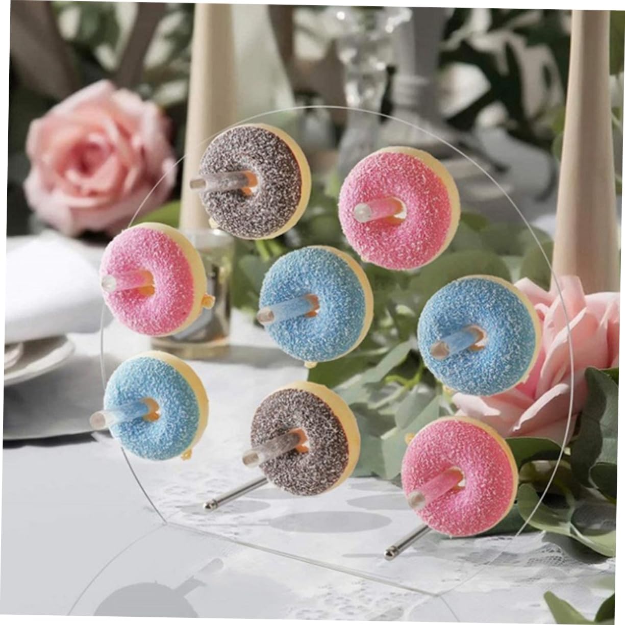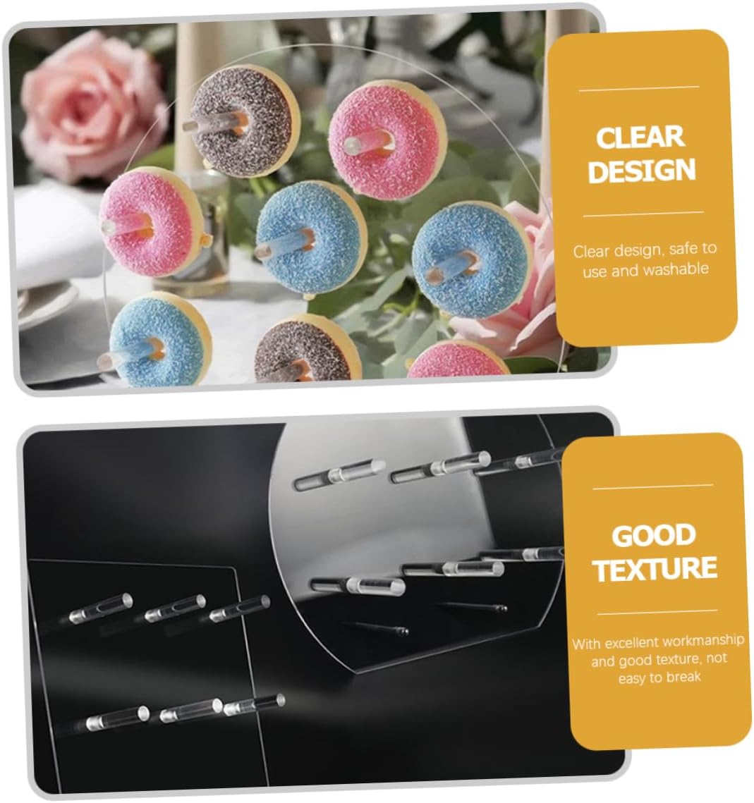 Package Include 2 x donuts stands Characteristics -Color: Transparent donut board -Material: Acrylic donut stand -Note: 8 holes, suitable for below 8.3cm doughnuts. acrylic donut display stand - The donuts display stand will be easy to assemble, can be used for a long term. donut display stand - Display dessert or treats in a fun and unique way with creative and donut stands donut holder. - Clear and stable to display the donuts, and , reusable and not easy to break. donut display holder - and easy to clean and use, fast dry and convenient for storage, can be used multiple times for many occasions. donut display board - for wedding party, dinner party, reunions, anniversary party, birthday party, bridal shower and so on. donut stand for partyGoods Informationdonut cake Try this donuts stand!.clear stand Your guests will adore this donut stand to better enjoy your celebrations! Place it on a table for showing party dessert donuts, stable and decorative, suitable for wedding, birthday, shower and more