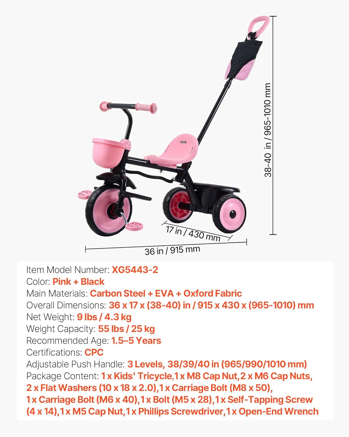 | Included Components | 1 x Accessory Kit, 1 x Kids' Tricycle |